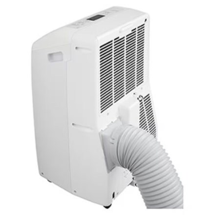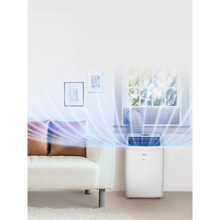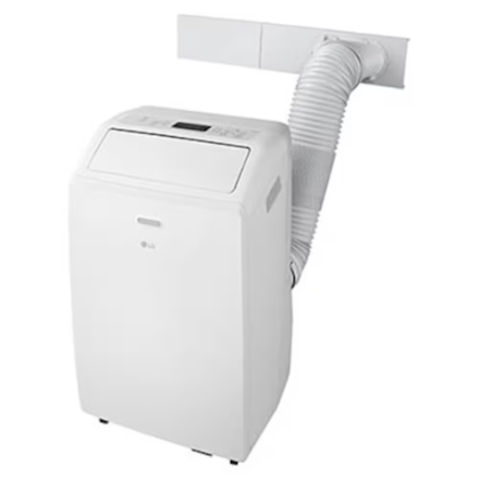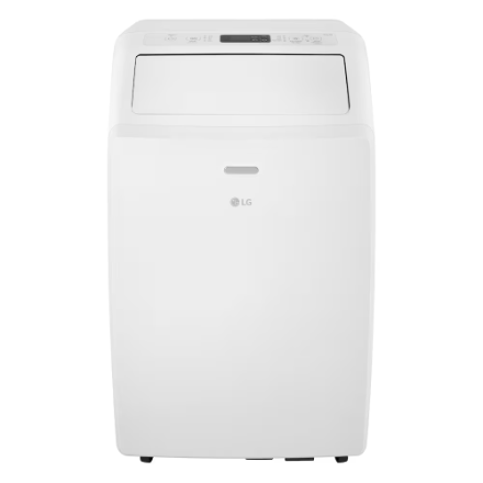 The LG Electronics 10,000 BTU (DOE/SACC) Portable Air Conditioner with LCD remote features a dehumidification mode that removes up to 3.1 pt. of moisture from the air per hour. Equipped with casters that allow for easy movement to the spaces that need chilling. This portable AC unit also includes a LCD remote control for easy temperature, fan speed and timer adjustments from across the room. This quiet machine (54 dBA) also features an oscillating air vent that automatically circulates cool air evenly to eliminate hot spots.